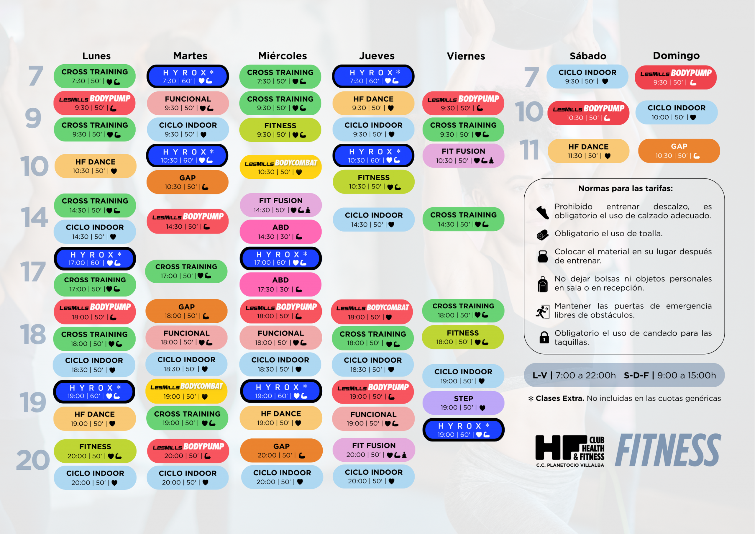 Descubre más de 100 clases fitness semanales diseñadas para todos los niveles y preferencias. Ofrecemos entrenamientos cardiovasculares intensos, sesiones de yoga relajantes, clases de body balance y muchas opciones más. Cada clase está pensada para motivarte y ayudarte a alcanzar tus objetivos de salud y bienestar.